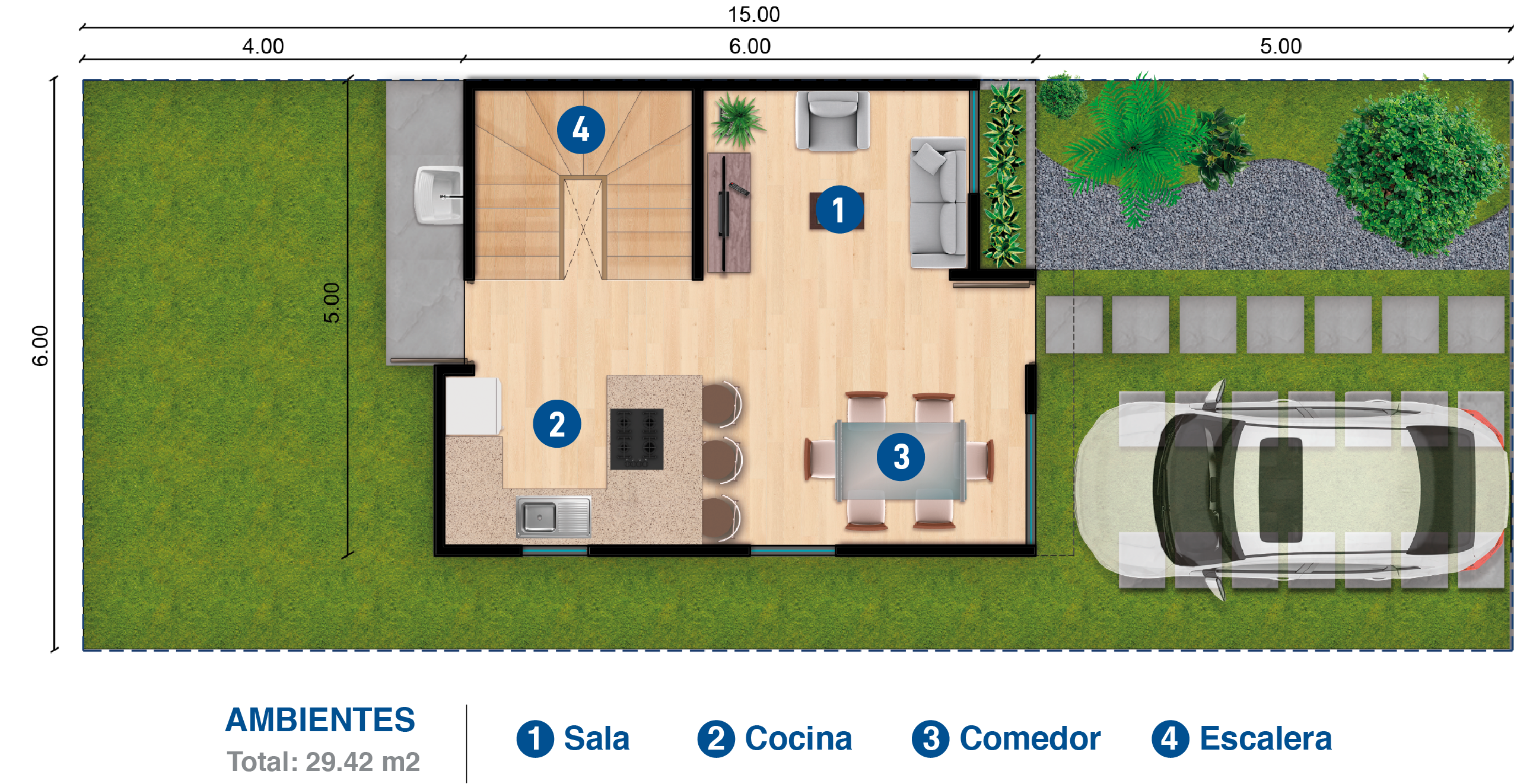 Espacios diseñados para tu comodidad con una distribución práctica y moderna que aprovecha cada metro, pensando en la vida diaria de tu familia.